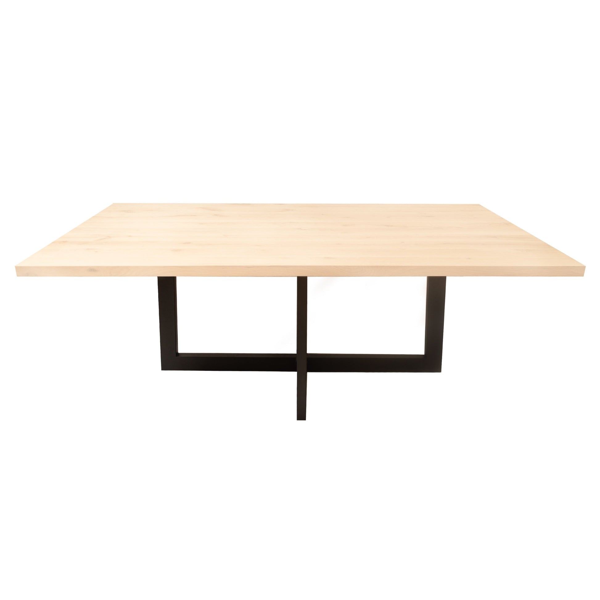 Der gerade Esstisch hat ein stabiles Matrixbein aus Stahl. Das Bein ist mattschwarz pulverbeschichtet und hat ein schlankes Design.